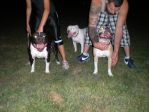the fawn and black females are sisters i produced a lilttle over a 1 1/2 years old in the pics the white female in the back is their mom i didnt produce